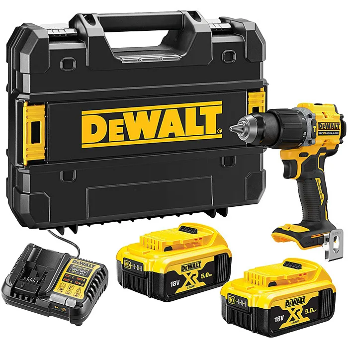 Taladro Percutor sin escobillas XR 18V 13mm 74Nm con 2 baterías Li-Ion 5Ah y maletín TSTAK
